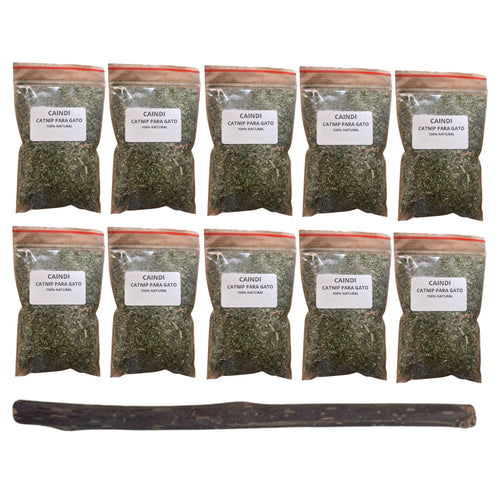 Kit 10 Pacotinhos Catnip Premium Caindi + 1 Palito Matatabi Orgânico Natural Alta Eficácia Rende Muito